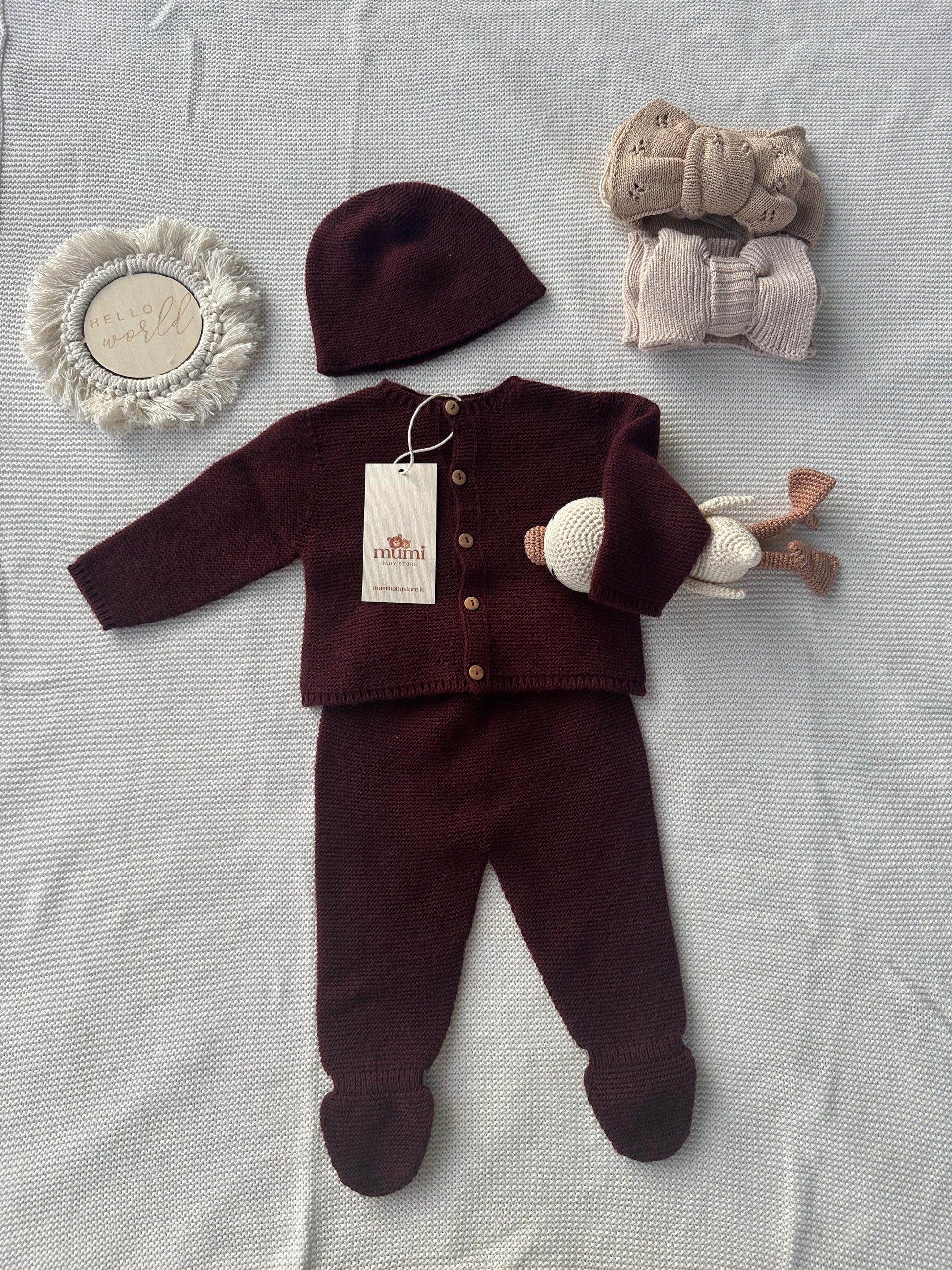 • Set composto da: cardigan + pantalone + cappellino 👶