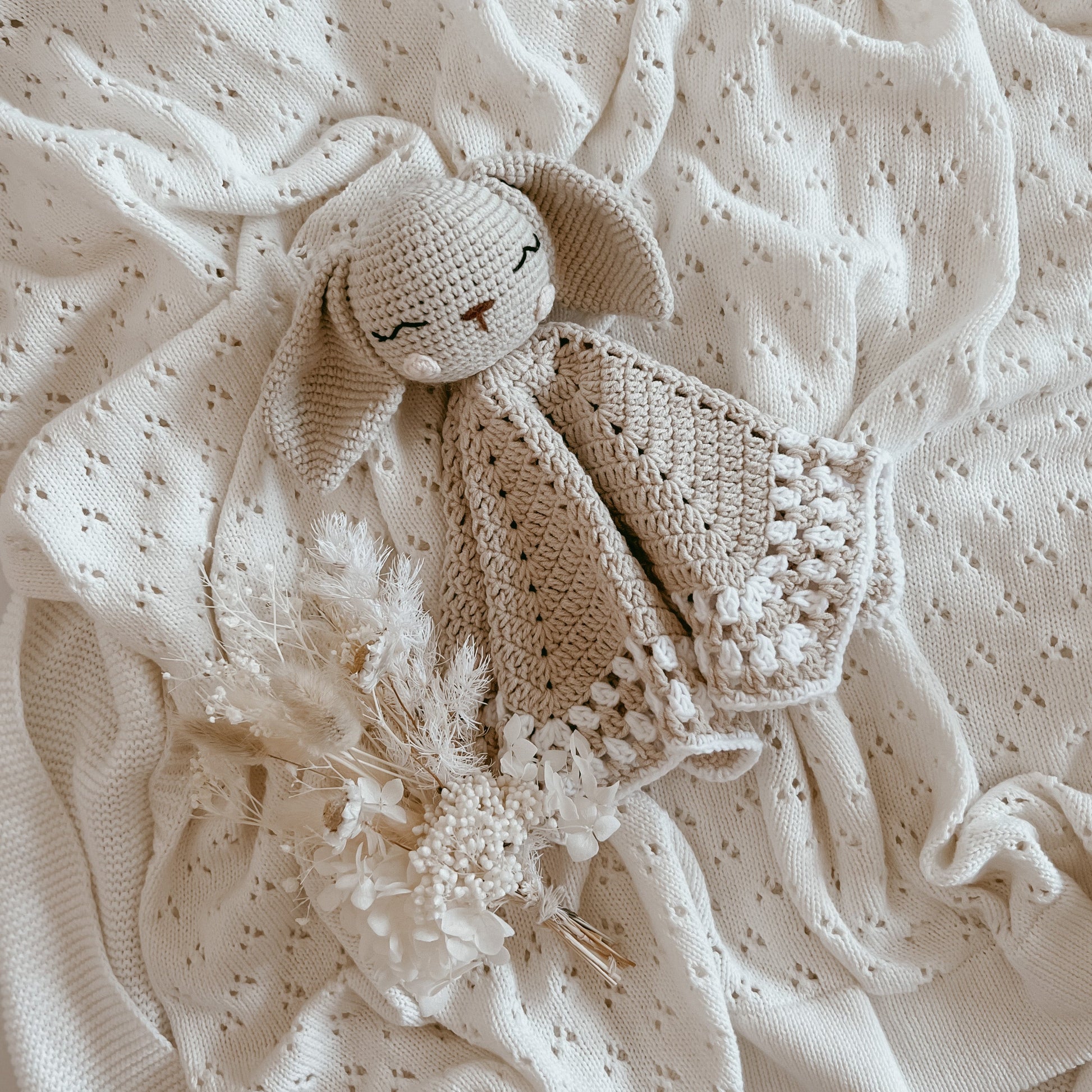 Ogni copertina doudou è realizzata a mano in cotone 100 % biologico. Progettato intenzionalmente per essere della dimensione perfetta per le piccole mani del tuo bambino e per poterlo custodire per tutta la vita.