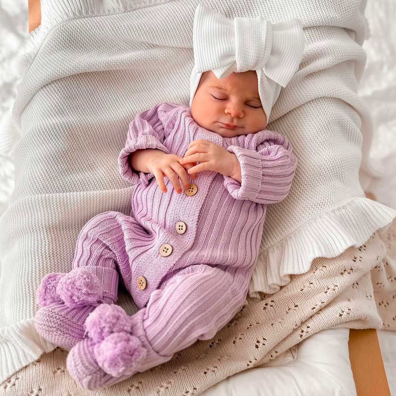 Lavorati a maglia con un design a trama classica e realizzati in cotone al 100% biologico, questi stivaletti sono extra morbidi e accoglienti per il tuo piccolo appena nato.